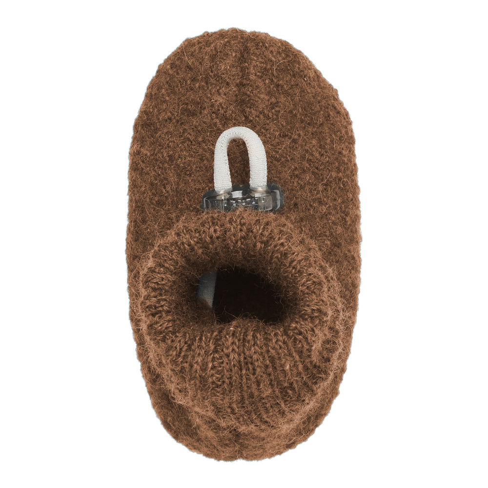 Bergstein offers the Cozy Baby collection for the littlest ones. These slippers are made of pure new wool. They have a wool insole and a knitted cuff with a tie-on cord, ensuring a snug fit. The outsole is made of leather, giving the slippers a chic look. The slippers are packaged in a cardboard box with stylish branding and a window, making them perfect for gifting.