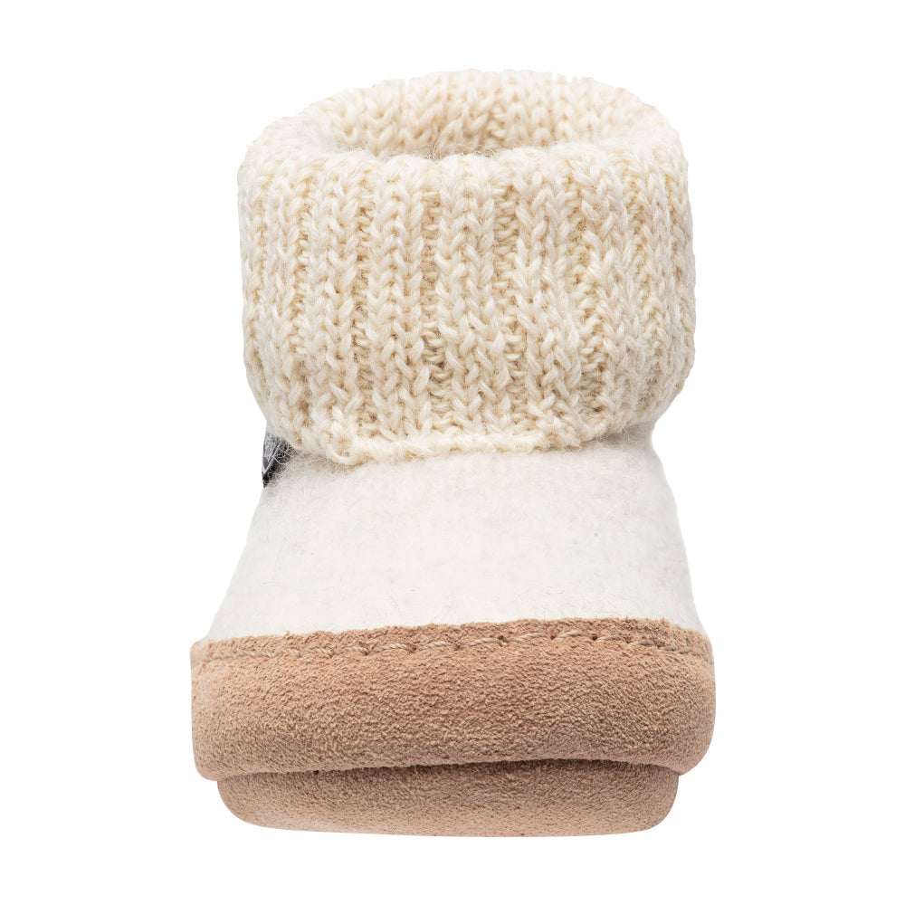 The Bergstein Cozy Lux slippers offer ultimate comfort and warmth for your feet. These durable slippers are made from pure new wool. They feature a wool insole and a two-tone knitted cuff that fits snugly around the ankle. The leather outsole gives the slippers a chic look.
